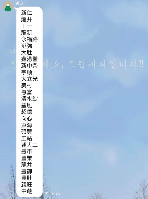 謝謝各位台中版的大大!