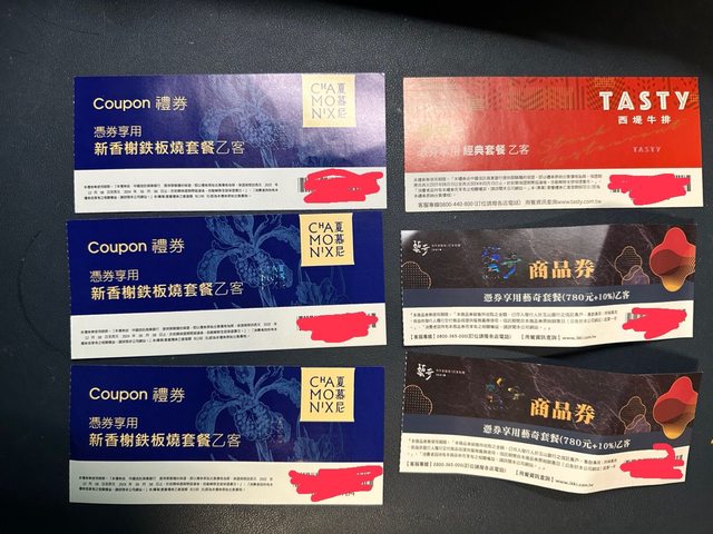 藝奇餐券2張,每張730