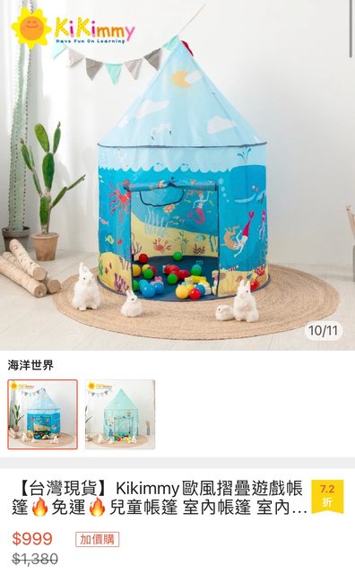 2. 全新Kikimmy摺疊遊戲帳篷 售450