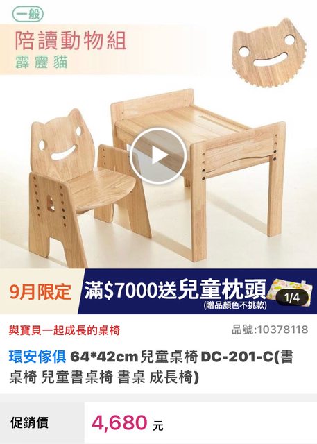 暫售11. 全新環安傢俱 64*42cm兒童桌椅DC-201-C(霹靂貓)售3800