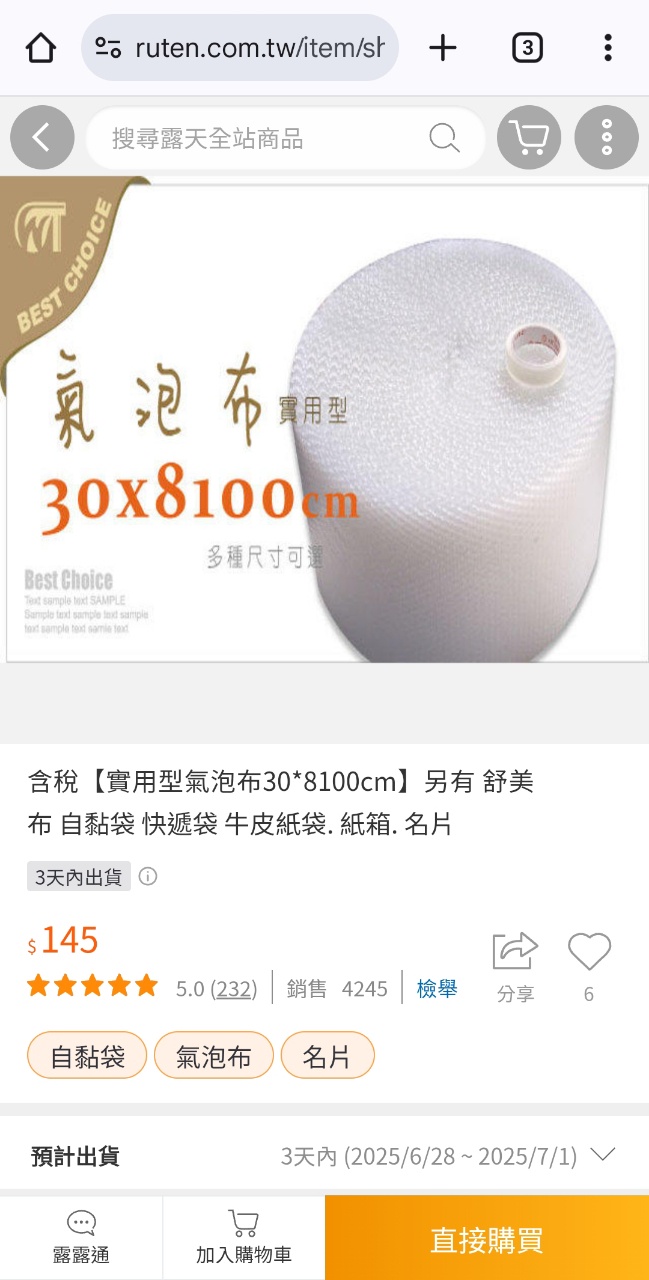→ aqn23520: 氣泡袋 27.51.152.149 06/28 13:36