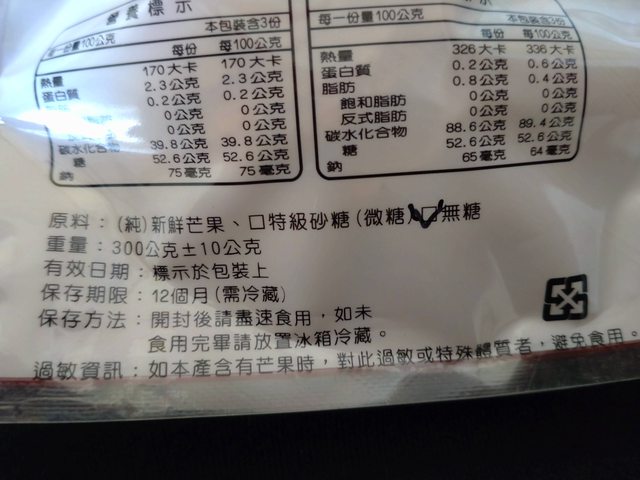 內容物也單純就芒果 糖兩種