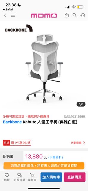 交易物品/金額/說明:backbone kabuto人體工學椅/售9000/二手九成新,手把有擦傷,去