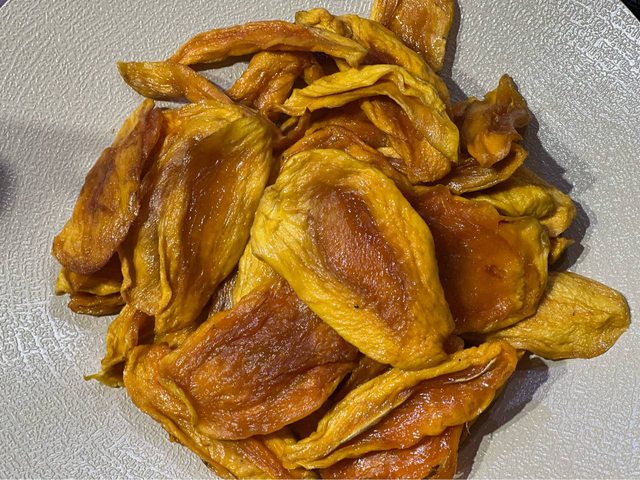 使用愛文芒果,不加糖搭配龍眼木碳火烘烤,古法烘焙滿滿碳香味,芒果乾是濕潤類型,