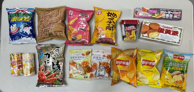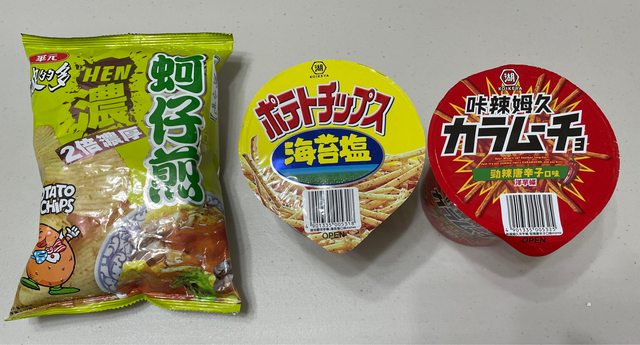 5、湖池屋洋芋條(65克):每個25元/2024年1月/海苔有5個、辣味有7個