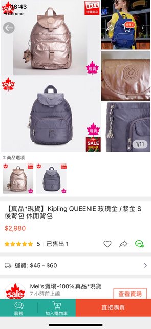 A Kipling 後背包 1200 元