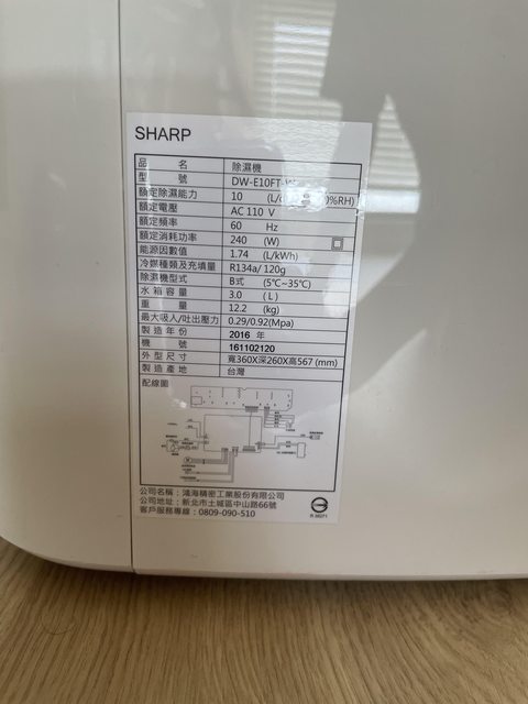 SHARP DW-E10FT-W 空氣清淨除濕機