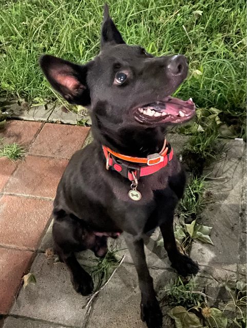 在史博館附近萊爾富前面發現這隻黑狗