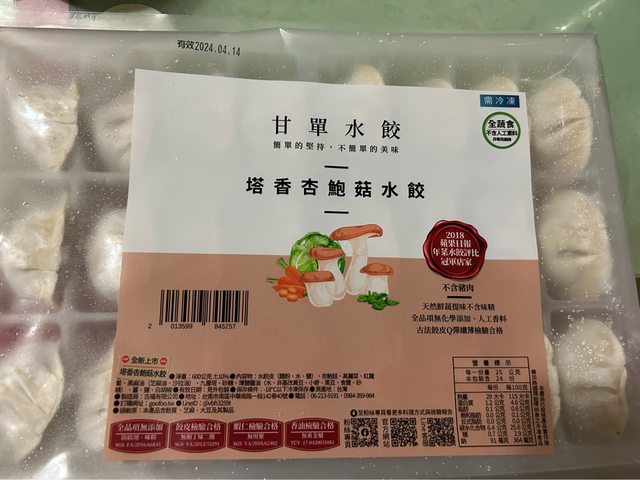 甘單水餃---塔香杏鮑菇2盒