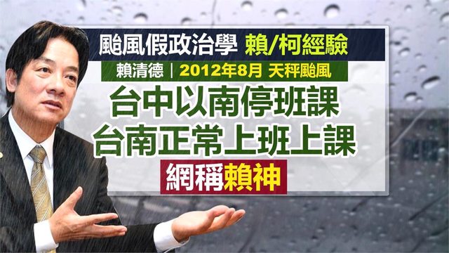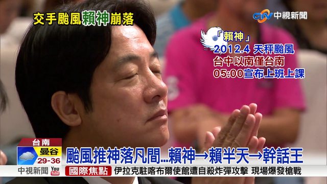 2012天秤->賴神 2016梅姬->賴半天 2017海棠->幹話王。
