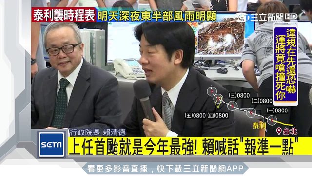 賴清德答詢表示,是否颱風放假?應以民眾的安全為最優先