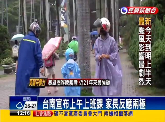 杜鵑強颱襲台,台南市正常上班上課,有人譙,也有人挺。