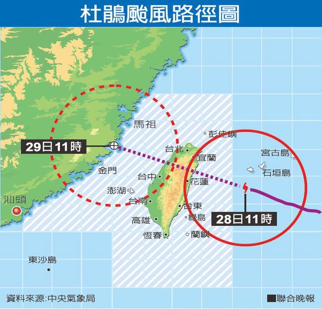象團隊的專業評估,得知杜鵑颱風今天的風力及雨量預測都
