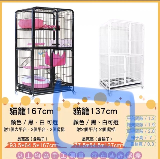 A. 三層貓籠,高度為 137 cm/黑色款 / 有附腳踏墊、平台墊、迷彩外層罩,如有需要