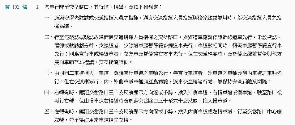 → emily259775: 車優先道是違規的,所以能開罰這項是只有前段行駛優 08/14 21:20