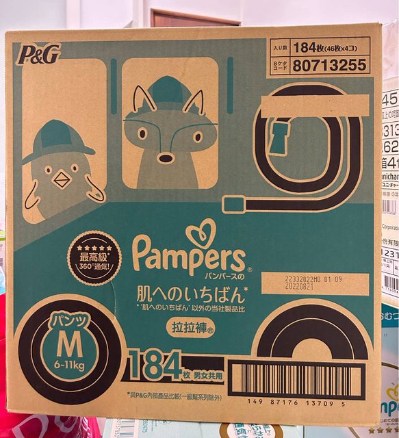 拉拉褲M 184枚/箱,售1100元;202208製