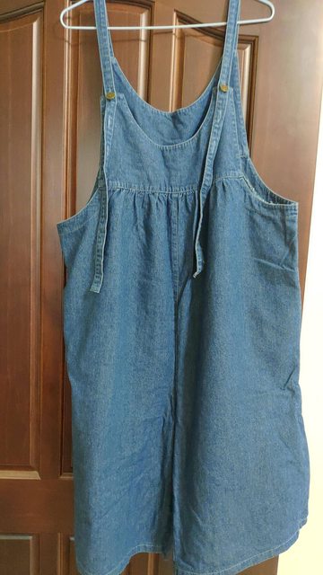 2、二手牛仔吊帶褲XL(7成新,吊帶長度可調,80kg可穿)