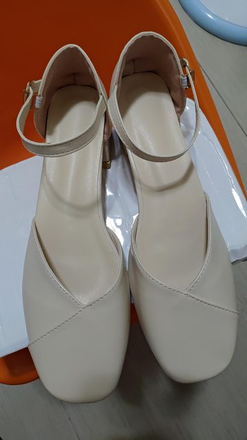 4、米色粗跟一字扣帶涼鞋:售150元。(全新,尺寸41,腳長25公分可穿)