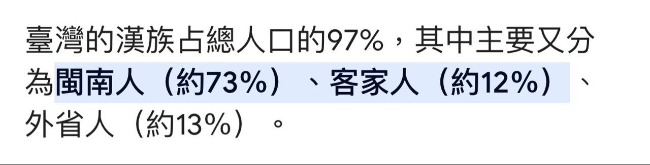推 tonyhome: 台灣閩南人佔了73% 但是現在以閩南語為慣用語剩多少? 08/23 20:13