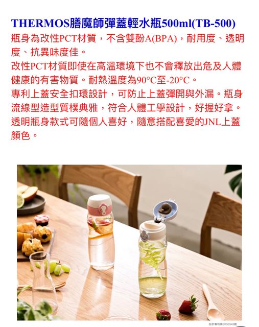 3:膳魔師彈蓋輕水瓶500ml(藍色、粉紅色)