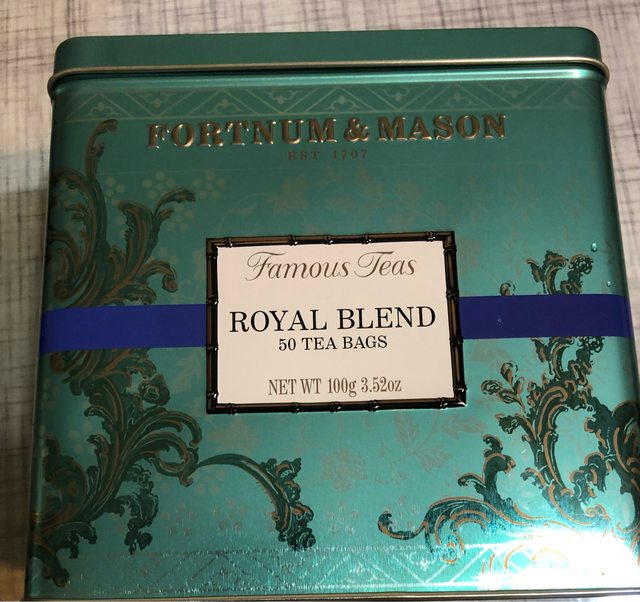 1、倫敦帶回來的F&M英式下午茶Royal Blend,鐵盒裝,50包茶包。售500元。