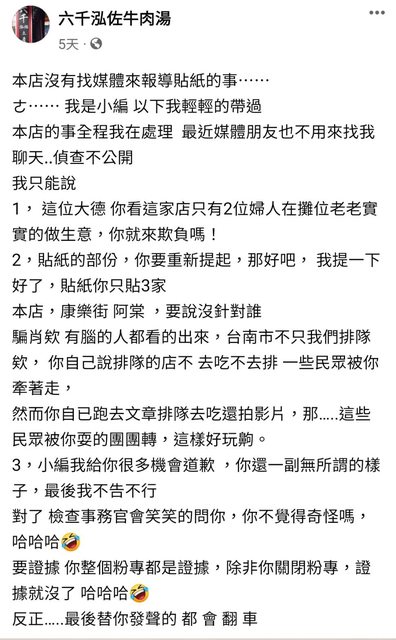 推 KarlMarx: 這是什麼噁心言論,賣個牛肉湯跩成這樣。 08/29 13:51