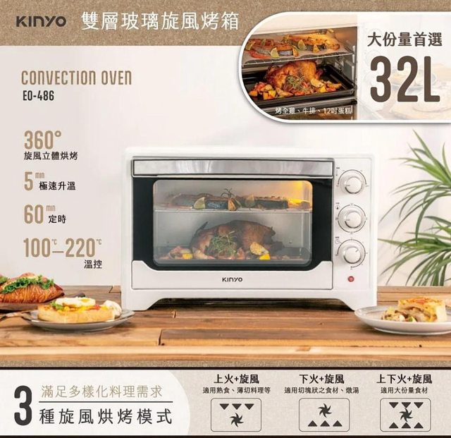 0. 全新【KINYO】32L雙層玻璃旋風烤箱,售2000元,限新市面交