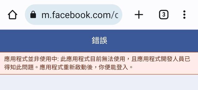 今天點FB登入卻看到“應用程式並非使用中”???