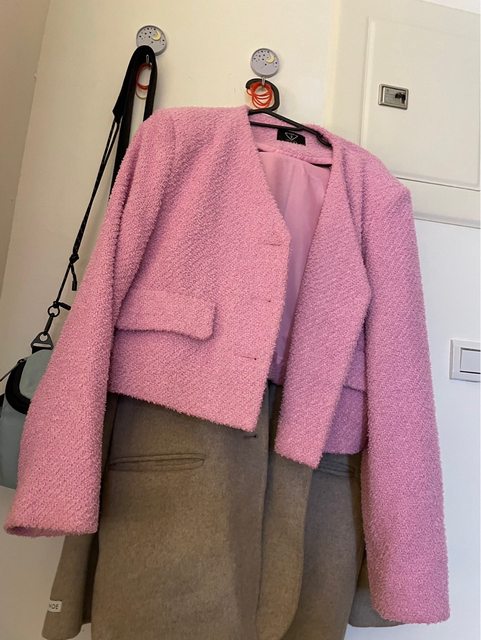 2.粉色芭比風短版外套 m 售 800