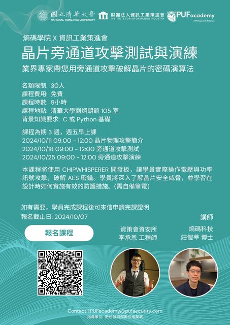 這堂課目的是讓學員了解晶片會遇到的資安攻擊手法,進而學習在晶片設計時應加入哪些