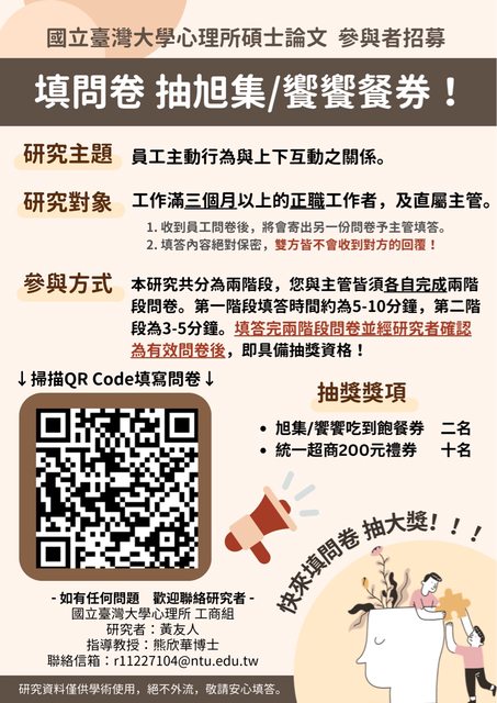 → jean0313 : 問題都可以聯絡研究者。謝謝各位的協助! 09/29 23:06