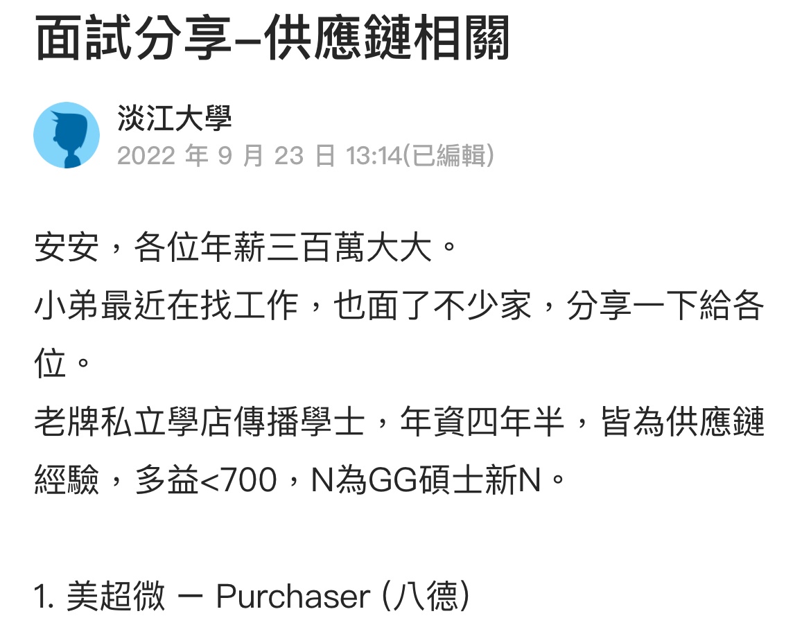 → qmei999 : 生 沒聽過才好笑 不要出來丟人現眼了 是拿不到offer 11/19 10:55