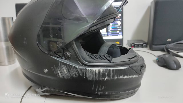 但也很慶幸有買它,某次回家的途中剛好遇到車禍,安全帽的傷痕都在下巴,如果沒有的話…