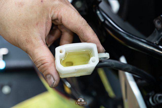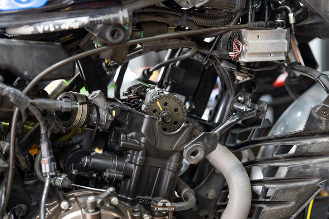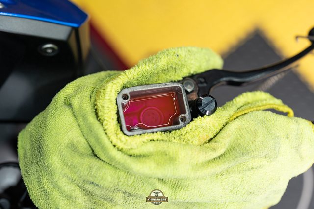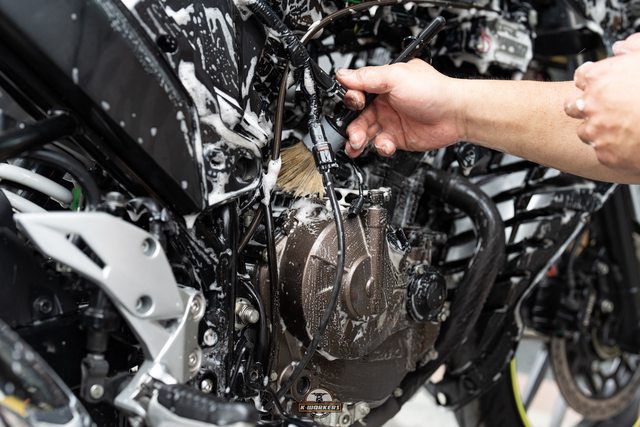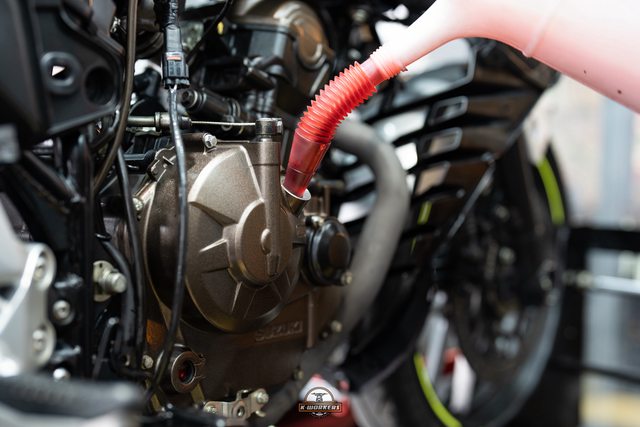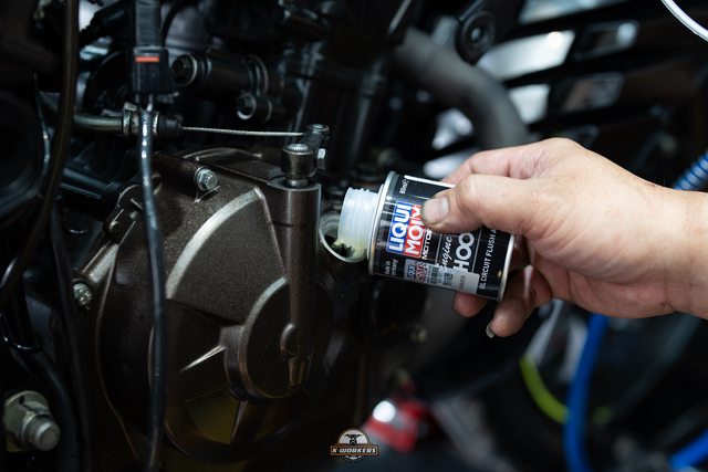 倒入LIQUI MOLY摩托車引擎內部清潔劑