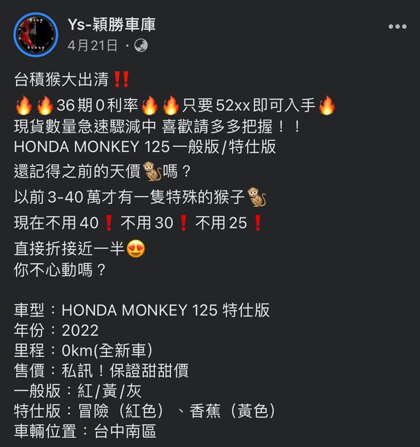 推 bigx3: 未來泰規monkey 會標配ABS 27.52.75.100 05/04 14:11