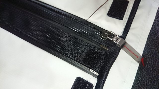 防水主拉鍊,一樣是 YKK 的,上方是軟式的拉繩。