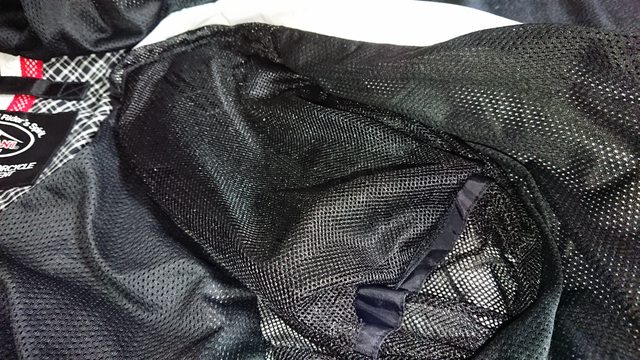 選擇拉上網布的,拉起來後則會變這樣, 中間多一條網布,對於撞風進氣的效果是很明顯的。