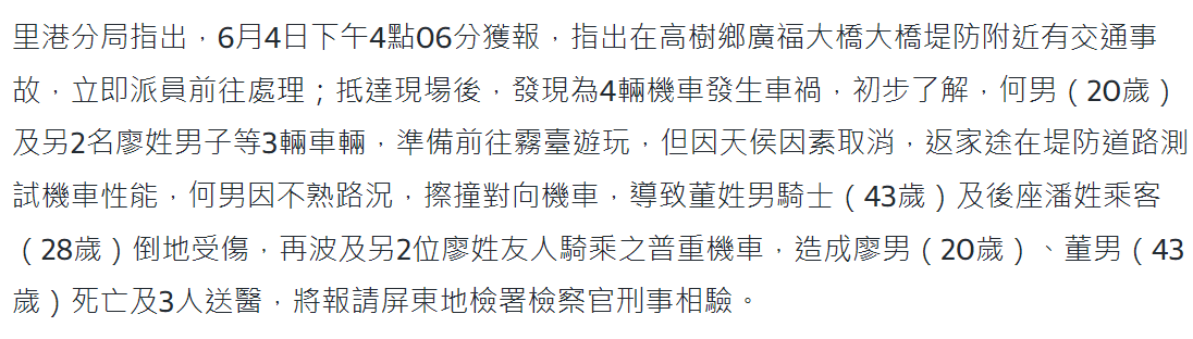 → good11126: 騎機車對撞比膽量結果真的撞死了lol 42.79.209.87 06/05 00:06