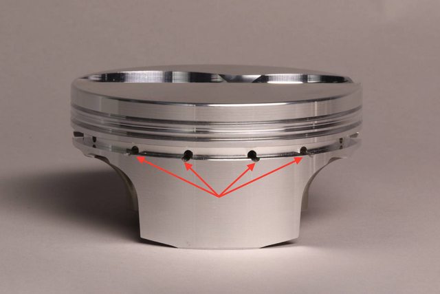 可以發現油孔的部分 分別在側裙以及第三環油環上