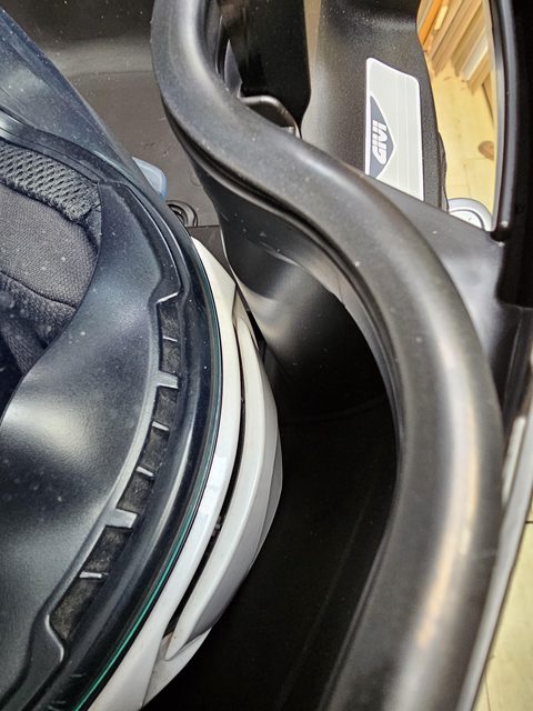 示範帽子是OGK 神威三的L帽體,可以看到這樣擺放的話不論是前後都會卡到,但如