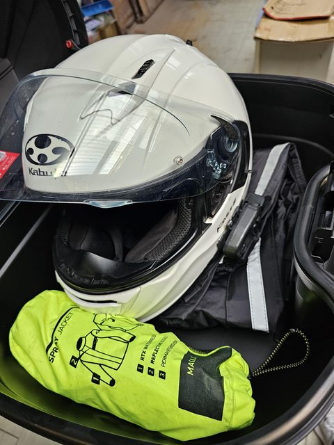 大概就這樣擺好了,而雨衣雨褲其實也是很怕車廂的高溫烘烤,因此也很適合一起丟