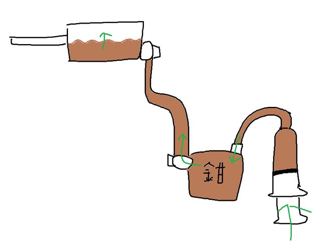輸入端接水管插進煞車油裡,