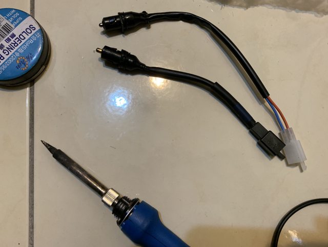 去電子材料行找110型2P接頭來改線,