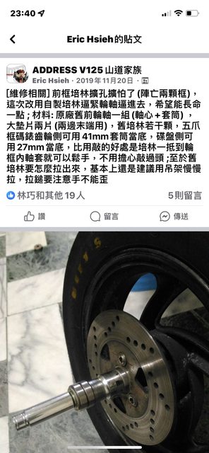 然後address 前輪軸扭力是43N.M