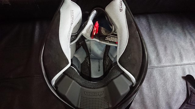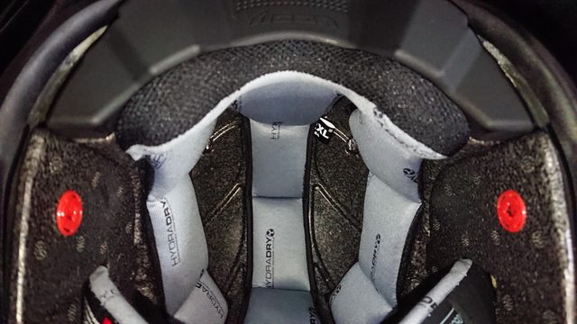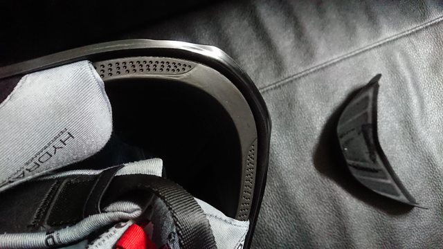 內襯,頭頂內襯有三條,蠻少見的內襯設計。 除了中間的頭頂內襯前面是用卡的外,其餘固定都是扣點。