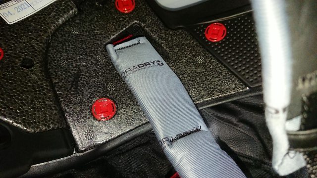而扣具,當然就是對應賽道帽訂位給雙 D 扣,電鍍紅色質感很不錯。