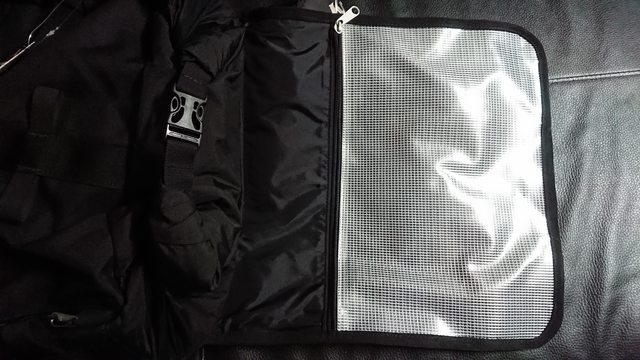 而背包本體翻起後長這樣,可以看到有不少預留的織帶。