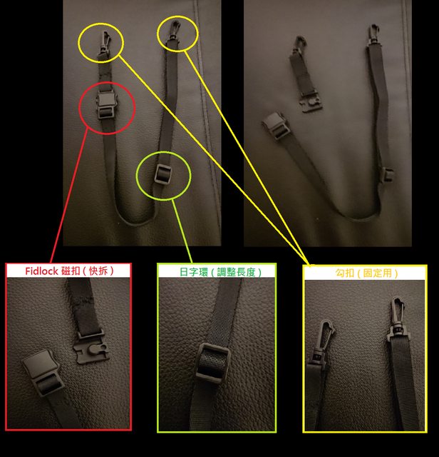 背帶則是兩端都是這種,由兩個相反方相扣環固定設計。