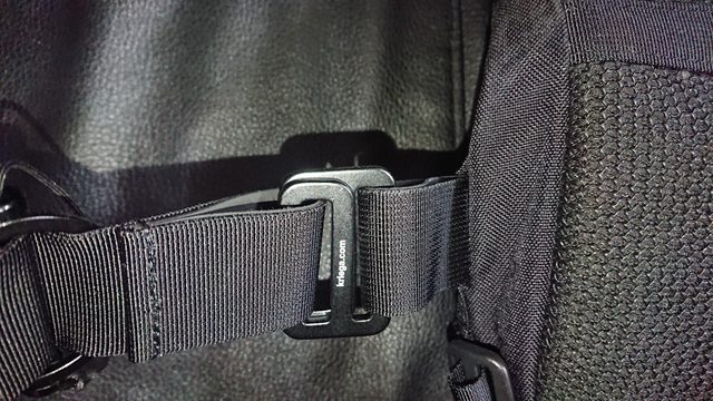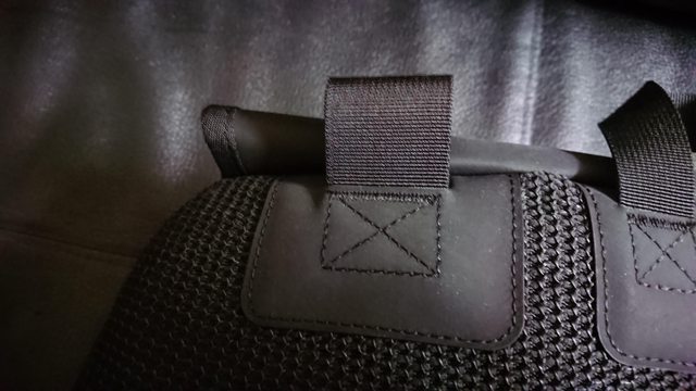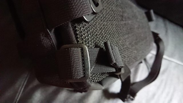 而背帶的另一端固定位置,則是在背包的左右側,明顯有個蠻大的織帶。