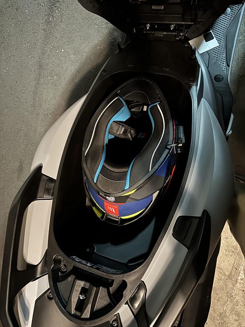 帽體應該算偏小,放入勁戰六車廂毫無壓力: